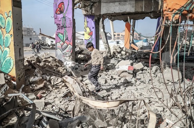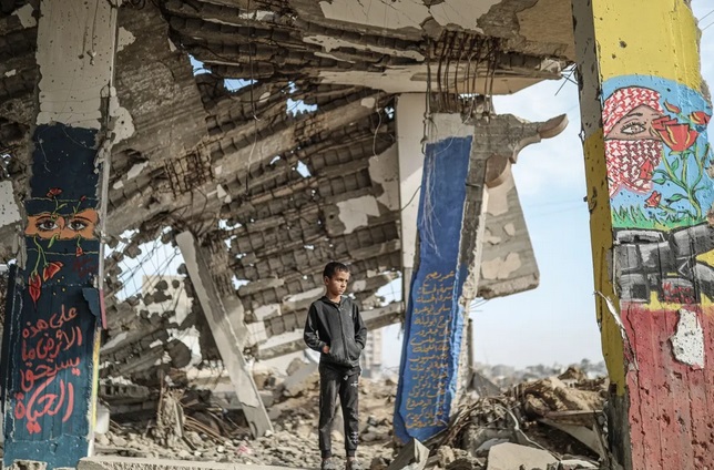 هنرمندان فلسطینی ساکن اردوگاه مغازی در مرکز غزه، آوار خانه‌های ویران‌شده توسط اسرائیل را به آثار هنری رنگارنگ تبدیل کرده‌اند.